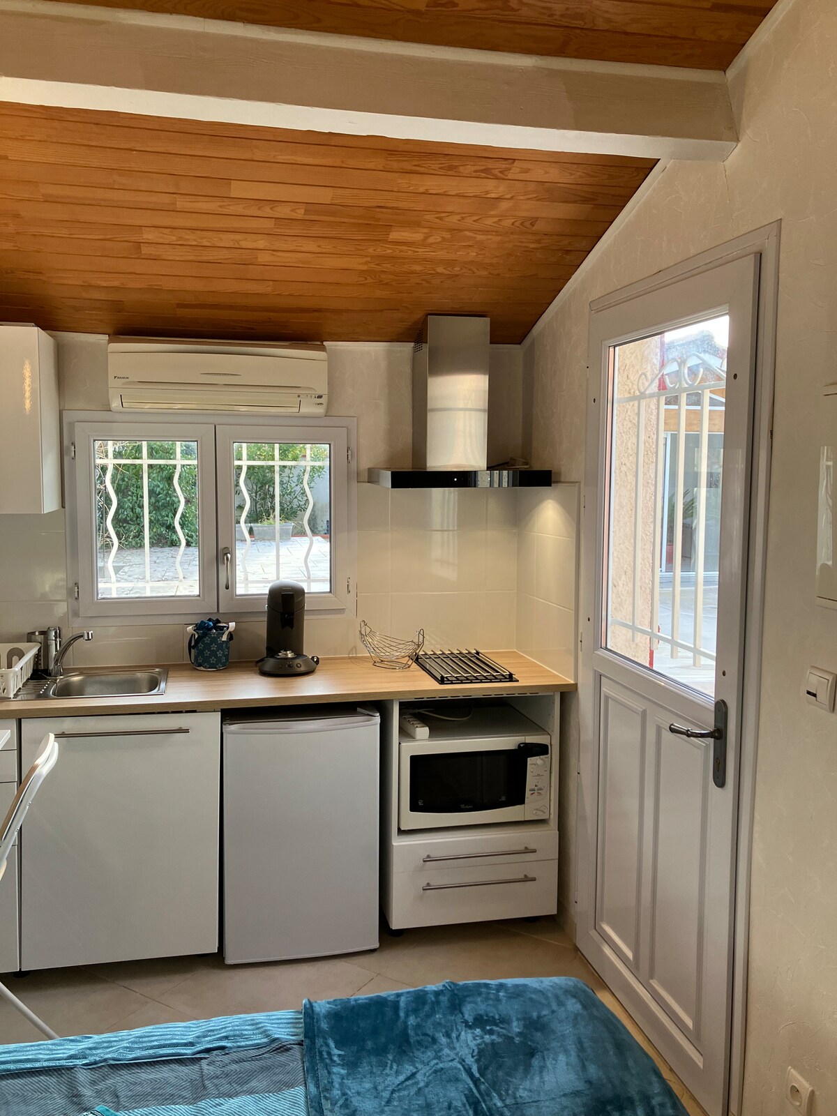 Vergessen Sie Ihre Sorgen in dieser geräumigen und ruhigen Unterkunft, wo Sie im Einklang mit der Natur wohnen werden. Das unabhängige Haus mit einer Fläche von 46 m² auf 2 Ebenen in absoluter Atmosphäre. Klimatisiert, ausgestattet mit einem Schlafzimmer mit 1 Bett 160 cm und Schlafsofa im Wohnzimmer. Handtücher und Bettwäsche werden gestellt. Dieses Haus ist ein Nichtraucherhaus. Ausgestattete Küche mit Waschmaschine und Geschirrspülmaschine. Sonnenterrasse, ideal zum Frühstücken oder für einen Aperitif am Abend.