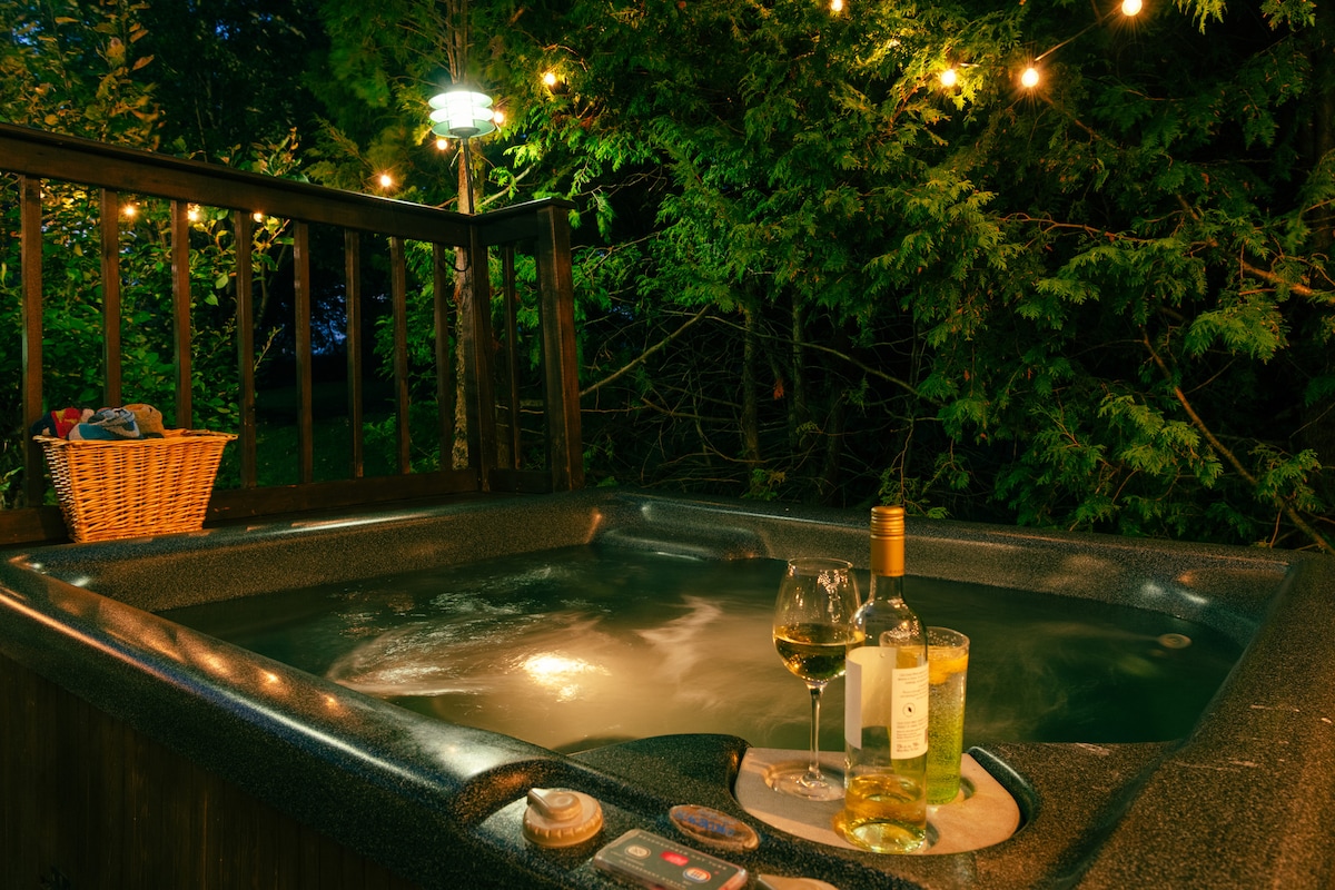 Rückzugsort am Waldfluss mit Whirlpool