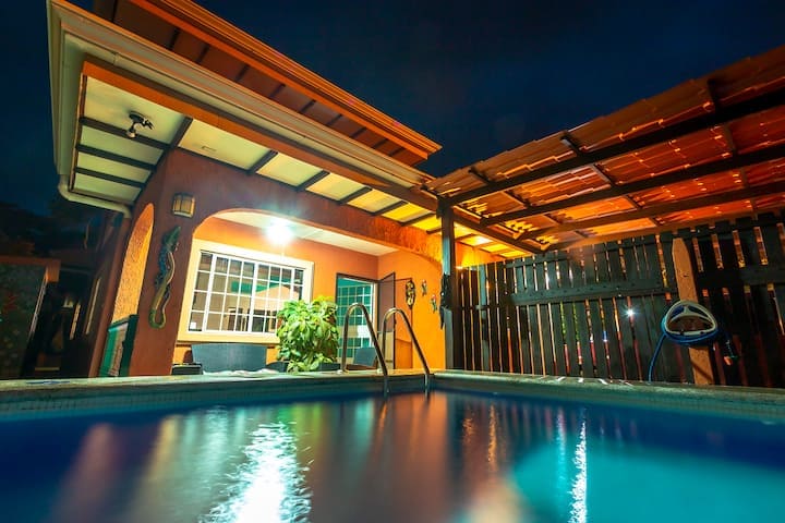 Dieses klassische Haus im costa-ricanischen Stil mit 3 Schlafzimmern und 2 Badezimmern ist die perfekte Kombination aus Stil und Komfort mit Feuerstelle, Pool-Lounge und Wasserfall-Pool. Es liegt perfekt am südlichen Ende von Jaco, nur 10 Gehminuten vom Strand und 15 Minuten von der Stadt entfernt. Meine Unterkunft eignet sich gut für Paare, Familien und Geschäftsreisende. Mit Ferienwohnungsfunktionen und erstklassigem Betriebsservice ist dies der perfekte Ort für deinen Urlaub im Land von Pura Vida.
