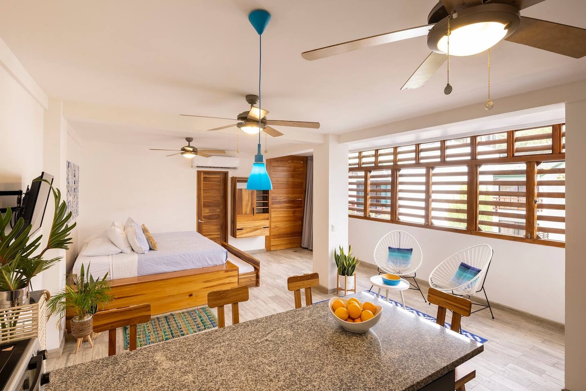 Studio Mar by panoramaplaces ist ein tropischer Rückzugsort nur wenige Schritte vom Meer entfernt in Playa Bejuco, Zentralpazifik – ideal für Paare, Familien und digitale Nomaden. Wache inmitten der Natur auf, erkunde den Nationalpark Manuel Antonio, Wasserfälle, Regenwaldpfade. Stelle dein Gleichgewicht in Verbindung mit der Natur und tropischen Vibes wieder her. 4 Schlafmöglichkeiten, mit Klimaanlage, WLAN, voll ausgestattet, Dachterrasse mit Grill und Gemeinschaftspool, kostenloser, umzäunter Parkplatz in der Nähe. Befindet sich im 2. Stock (kein Aufzug). Folge uns @panoramaplaces