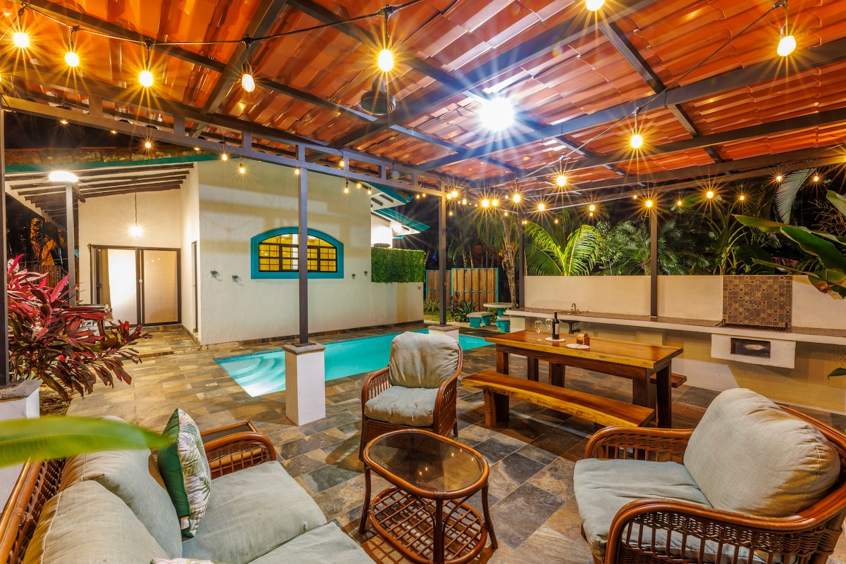Jumanji is two separate apartments (duplex building) united by a shared patio. You rent one of the apartments. Is filled with a designer atmosphere, where we built and decorated everything with our own hands. Murals, sculptures, fun interior elements. Enjoy the large patio, refreshing pool, outdoor kitchen, fire pit, and sauna in the evenings We are surrounded by national parks with waterfalls and a couple of minutes to the beach Look at the other home, or the whole villa rental in my profile