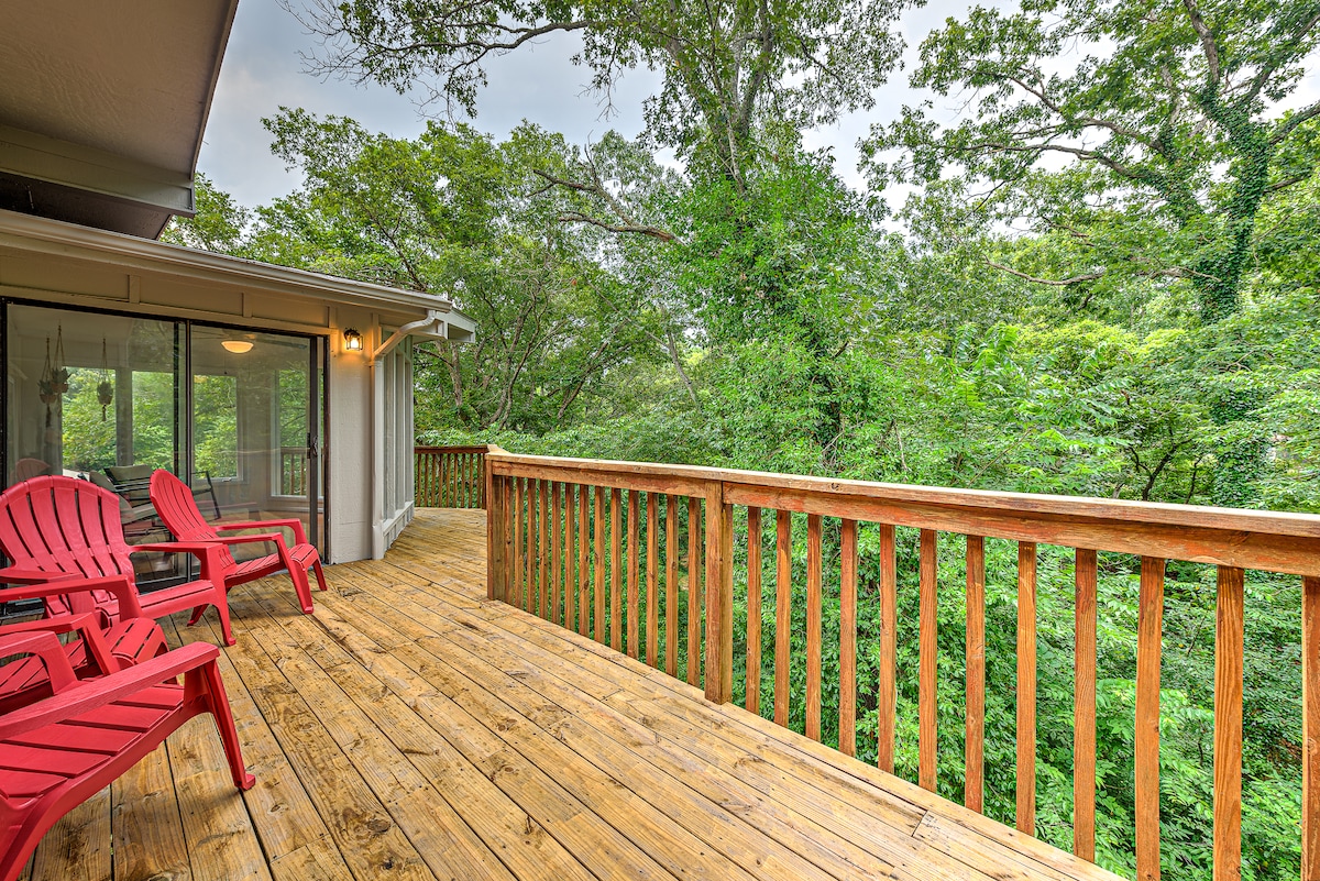 Wache im Paradies mit Seeblick von beiden Schlafzimmern und 3 privaten Terrassen auf! Dieses geräumige, 1.700 Quadratfuß große, umgebaute Stadthaus befindet sich am Lake Rayburn und verfügt über 2 Kajaks, ein Paddelbrett und ein Kanu. Es ist nur 1/4 Meile vom Highway 71 entfernt und bietet einfachen Zugang zum Back 40, Little Sugar Bike Trail, Bentonville Bike Trails und Golfplätzen. Die Küche ist komplett für deine Kochbedürfnisse ausgestattet. Das Hauptschlafzimmer verfügt sogar über ein verstellbares Kingsize-Bett, damit du dich von all deinen Aktivitäten erholen kannst!