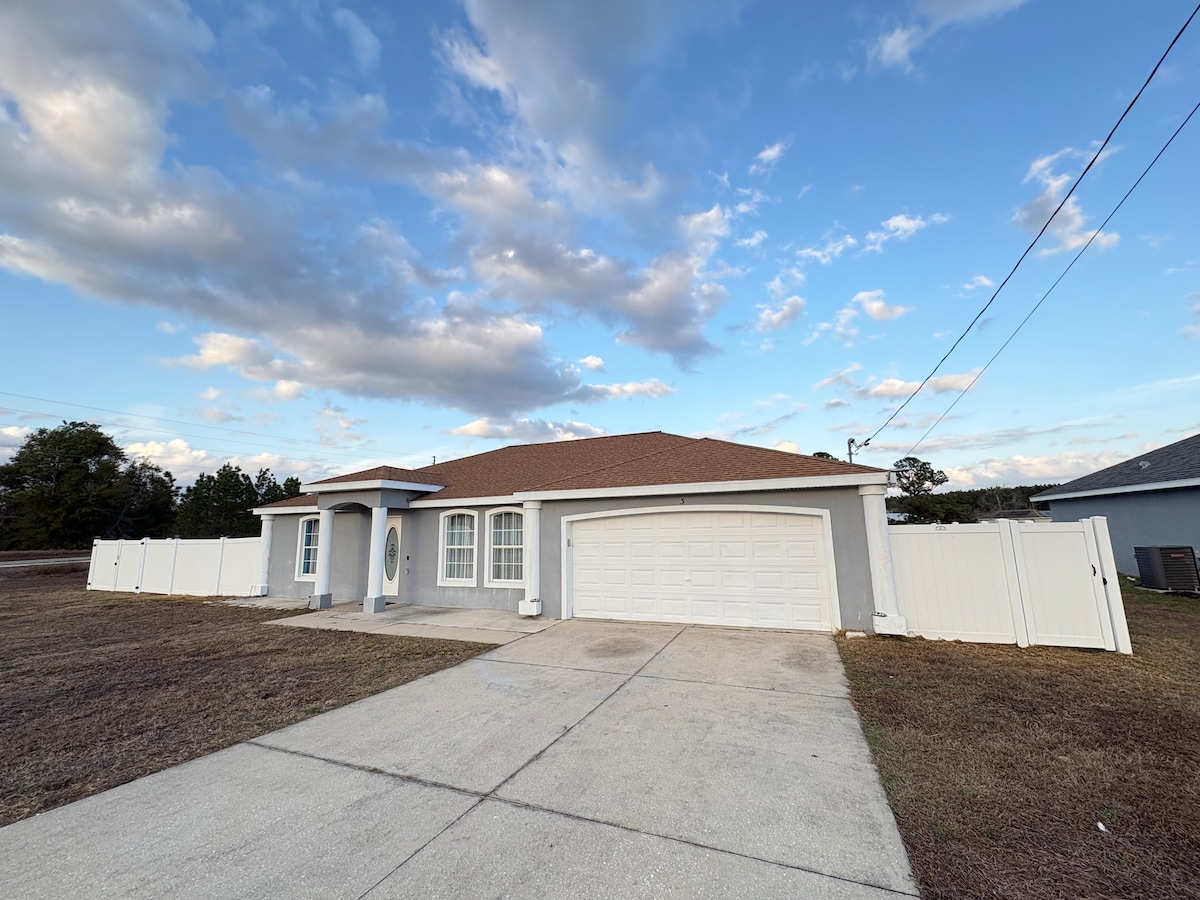 Entspanne dich in diesem gemütlichen und ruhigen Kurzurlaub in einem sicheren und ruhigen Viertel in der Nähe von The Villages. Es ist günstig gelegen, alles innerhalb von 1,5 Meilen zu Walmart, Aldi, Waffle House, McDonald's, Pizza Hut, Cracker Barrel, BJ's Wholesale und vielen anderen Geschäften und Restaurants. Außerdem das Dorfkrankenhaus. Wir befinden uns auch zwei Meilen vom Stadtplatz The Villages Spanish Springs entfernt, der jeden Abend der Woche von 17:00 bis 21:00 Uhr kostenlose Unterhaltung bietet.