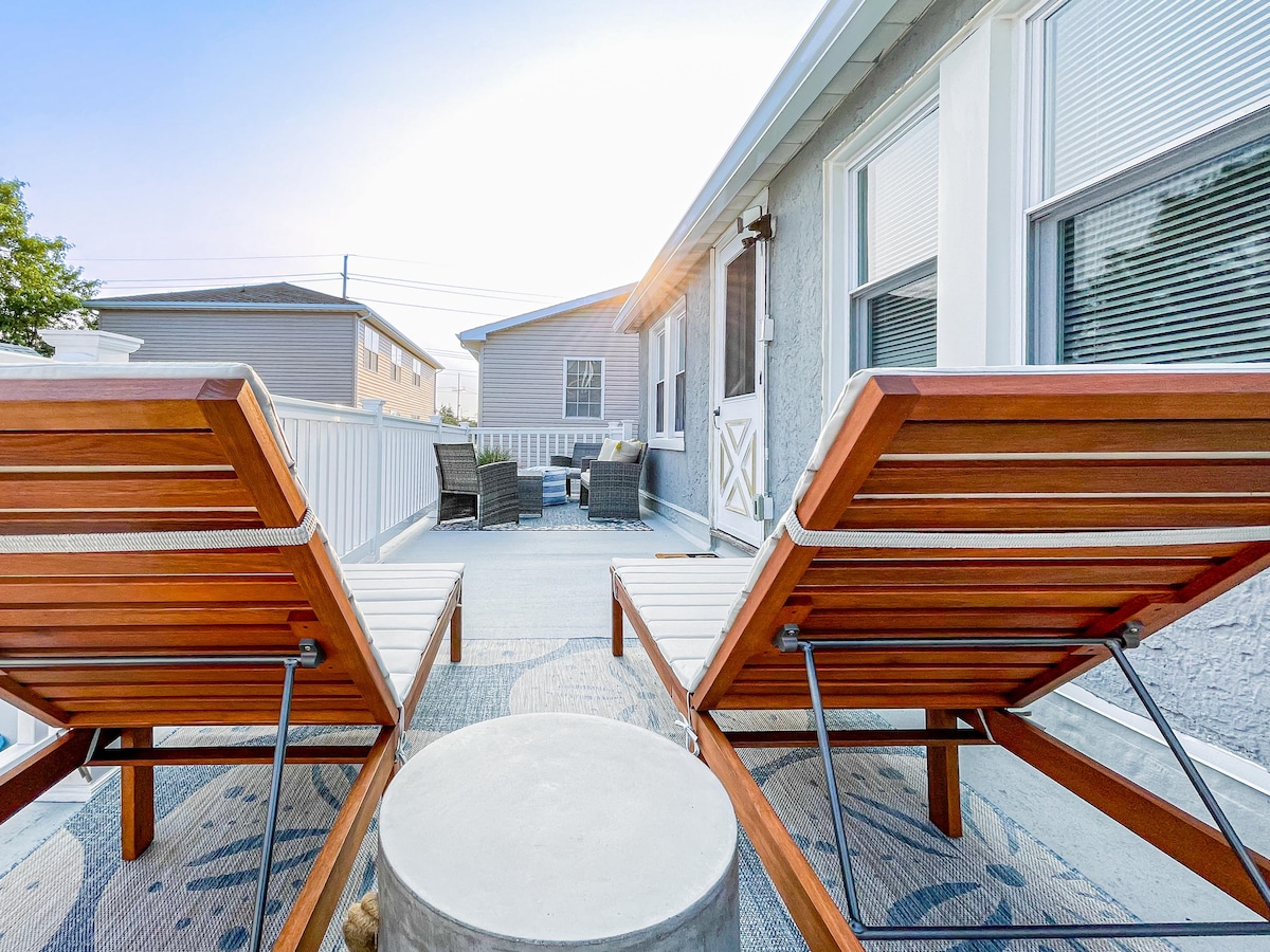 Willkommen in unserem von Austin inspirierten Rückzugsort! Dieses voll ausgestattete Haus wurde entworfen, um deinen Aufenthalt unvergesslich zu machen. Entspanne dich nach einem Tag am Strand im Whirlpool oder dusche dich in der Außendusche ab. Der Hinterhof ist ein Rückzugsort mit einer großen Terrasse, einer gemütlichen Feuerstelle und einer stimmungsvollen Beleuchtung – perfekt für Abende. Mit einladenden Sitzbereichen im Innen- und Außenbereich gibt es viel Platz zum Entspannen oder Zusammensein. Und wenn du bereit bist, die Gegend zu erkunden, bist du nur 10–15 Gehminuten von tollen Restaurants, Bars und Geschäften entfernt.