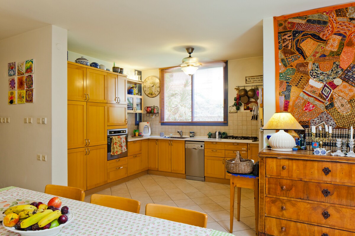 Entspanne dich in diesem einzigartigen und ruhigen Urlaub im Wald mitten im Land. Eine separate Einheit vor einem grünen Blick. In einem religiösen Moshav auf halbem Weg zwischen Jerusalem und Tel Aviv. Einheit mit separatem Eingang (Treppe), Schlafzimmer mit Doppelbett, Bad, Wohnzimmer und Küchenzeile. Ein Sofa, das sich zu einem Doppelbett öffnet. Ein riesiger Balkon mit Blick auf einen atemberaubenden Blick auf einen grünen Wald. Esist ein schöner Spaziergang von der Einheit zum Wald. Das Tor des Moshavs ist am Schabbat geschlossen.