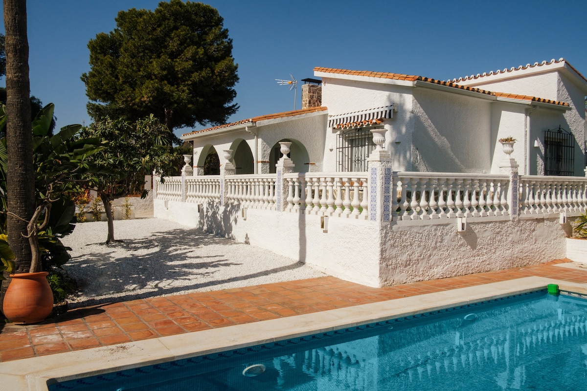 Casueña liegt im Herzen der ländlichen Umgebung, am Rande der Stadt MÁLAGA, umgeben von Bäumen und Vögeln. Der Flughafen, das Zentrum von Málaga und die Strände sind nur 20 Kilometer entfernt. CASUEÑA ist eine wunderschöne Villa mit einem privaten Pool mit Salzwasserchlorierung, der das ganze Jahr über beheizt wird, einem Holzgrill, großen Bäumen, einem Herd mit sechs Kochfeldern und einem 90-cm-Ofen. Sie verfügt über eine fantastische, 50 m² große Veranda, die der Hauptaktivitätsbereich des Hauses sein wird; daneben befinden sich der Grill und der beheizte Pool.
