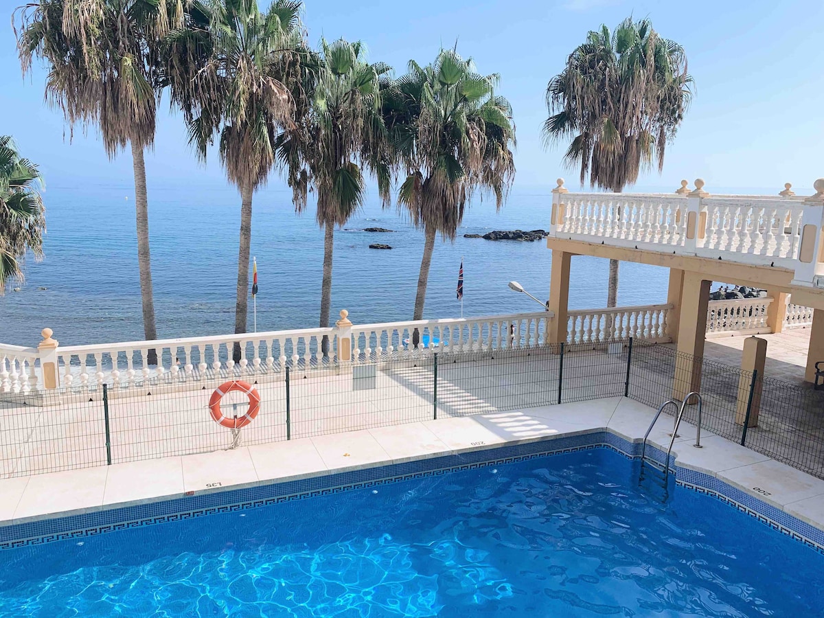Schönes Studio am Strand mit herrlicher Aussicht. Ein ruhiges Studio, in dem du den Wellen lauschen, ein Buch im Bett mit schöner Aussicht lesen oder den Sonnenuntergang beobachten kannst. Zwei Minuten zu Fuß von Puerto Marina, wo Sie alle Arten von Bars, Restaurants, Läden finden... Genießen Sie den besten Strand in Benalmádena, "Malapesquera", nur zwei Schritte vom Studio entfernt. Ein paar Gehminuten entfernt findest du Supermärkte, Banken, Taxi- und Bushaltestellen.