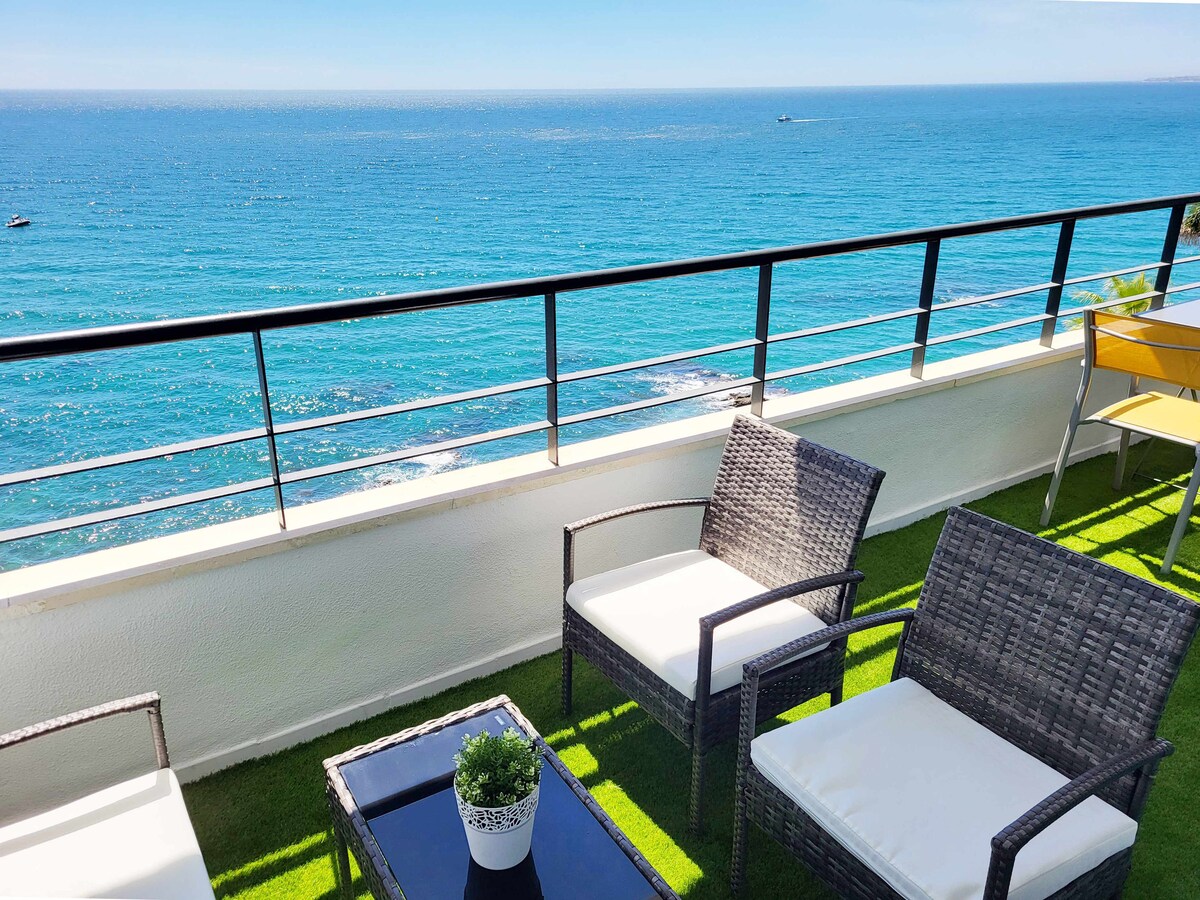 Schöne Wohnung mit 1 Schlafzimmer, 40 m2 & 60 m2 Terrasse. Sehr gemütlich. Es hat den ganzen Tag Meerblick und Sonne. Schau nach Westen. Es befindet sich im Erdgeschoss. Es ist ideal für ein Paar. Baby & Kind VERBOTEN. Das Gebäude verfügt über 60 Wohnungen. Der Pool ist saisonal und gemütlich. Meine Wohnung ist ein paar Minuten zu Fuß von der Promenade und dem Strand von Santa Ana sowie dem Park und den Bushaltestellen entfernt. Meine Küche ist voll ausgestattet. Es gibt 2 Klimaanlagen und alle Geräte sind neu. Ich habe 600 MB WLAN