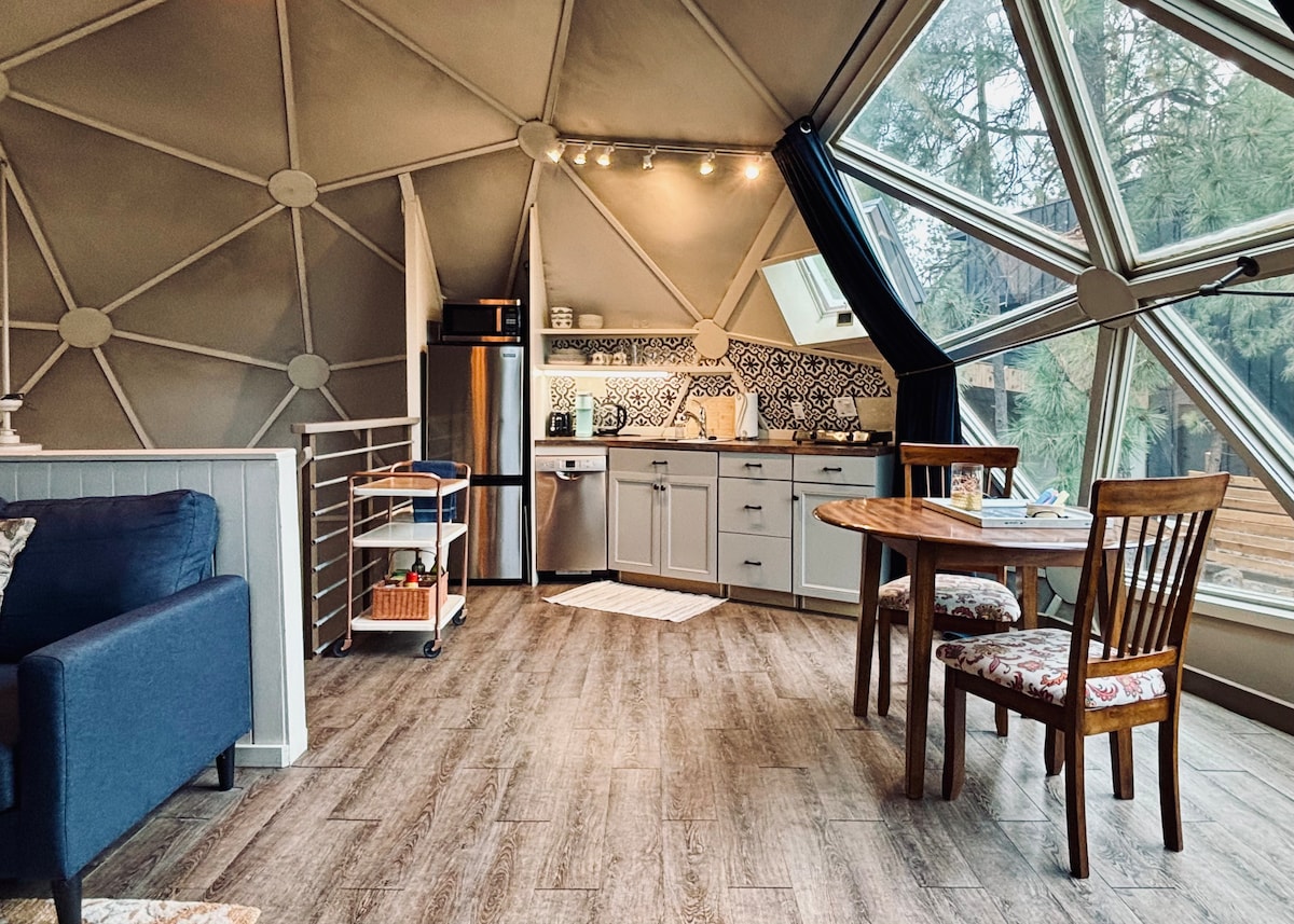 Deine Chance, in einer echten geodätischen Kuppel zu übernachten! Dieser einzigartige Rückzugsort verbindet Komfort mit architektonischem Charme. Gäste beschreiben es als gemütlich, inspirierend und unvergesslich – ein Aufenthalt, der sich wie ein Erlebnis anfühlt, nicht nur wie ein Ort zum Schlafen. Eingebettet in das Viertel First-on-the-Hill am Century Drive, ist der Dome perfekt gelegen, um alles zu erreichen, was Bend zu bieten hat. Egal, ob du zum Skifahren, Radfahren, Wandern oder einfach nur zum Entspannen hier bist, du wirst es lieben, wie nah du an Bends besten Abenteuern bist.