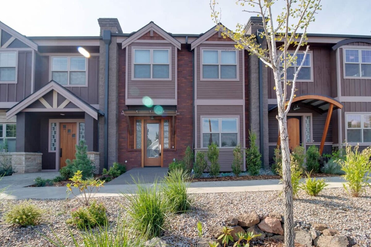 Genieße die private Dachterrasse mit Gasfeuerstelle und Wet-Bar. Entspanne dich nach einem Tag voller Aktivitäten in der maßgefertigten Badewanne. Entspanne dich in diesem mehrstöckigen luxuriösen Stadthaus. 2 Gehminuten zum Deschutes River Trail und 10 Gehminuten zur Innenstadt von Bend. Zu Fuß zu lokalen Brauereien, Geschäften und Restaurants. Genieße eine Mahlzeit mit deinen Freunden oder deiner Familie in unserer Gourmet-Küche. Verstaue deine Fahrräder und Skiausrüstung sicher in der 2-Auto-Garage. SCHNELLES WLAN – Perfekt für mobiles Arbeiten.