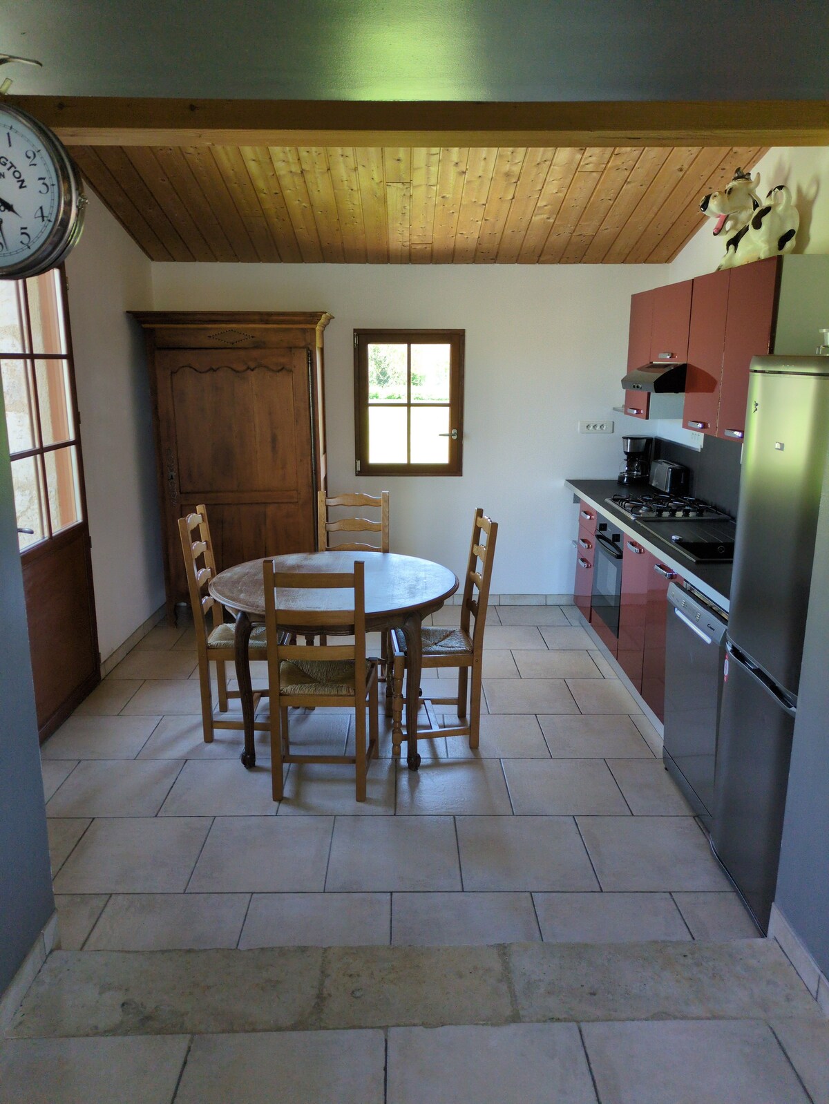 Komplette Unterkunft mit einem separaten Schlafzimmer von 19 m2 im Obergeschoss und einem weiteren Schlafzimmer im Erdgeschoss. Wohnzimmer von 19 m2 mit Waschbecken, Kochplatte, Kaffeemaschine, Wasserkocher, Kühlschrank und Mikrowelle. Badezimmer mit WC von 7 m2 im Obergeschoss neben dem Schlafzimmer (Hauptschlafzimmer). Ein Zimmer im Erdgeschoss 17 M2, Eine private Terrasse, eine gemeinsame Terrasse rund um den Pool. Unser Pool steht Ihnen während der schönen Jahreszeit zur Verfügung. Gemeinsam mit den Eigentümern.