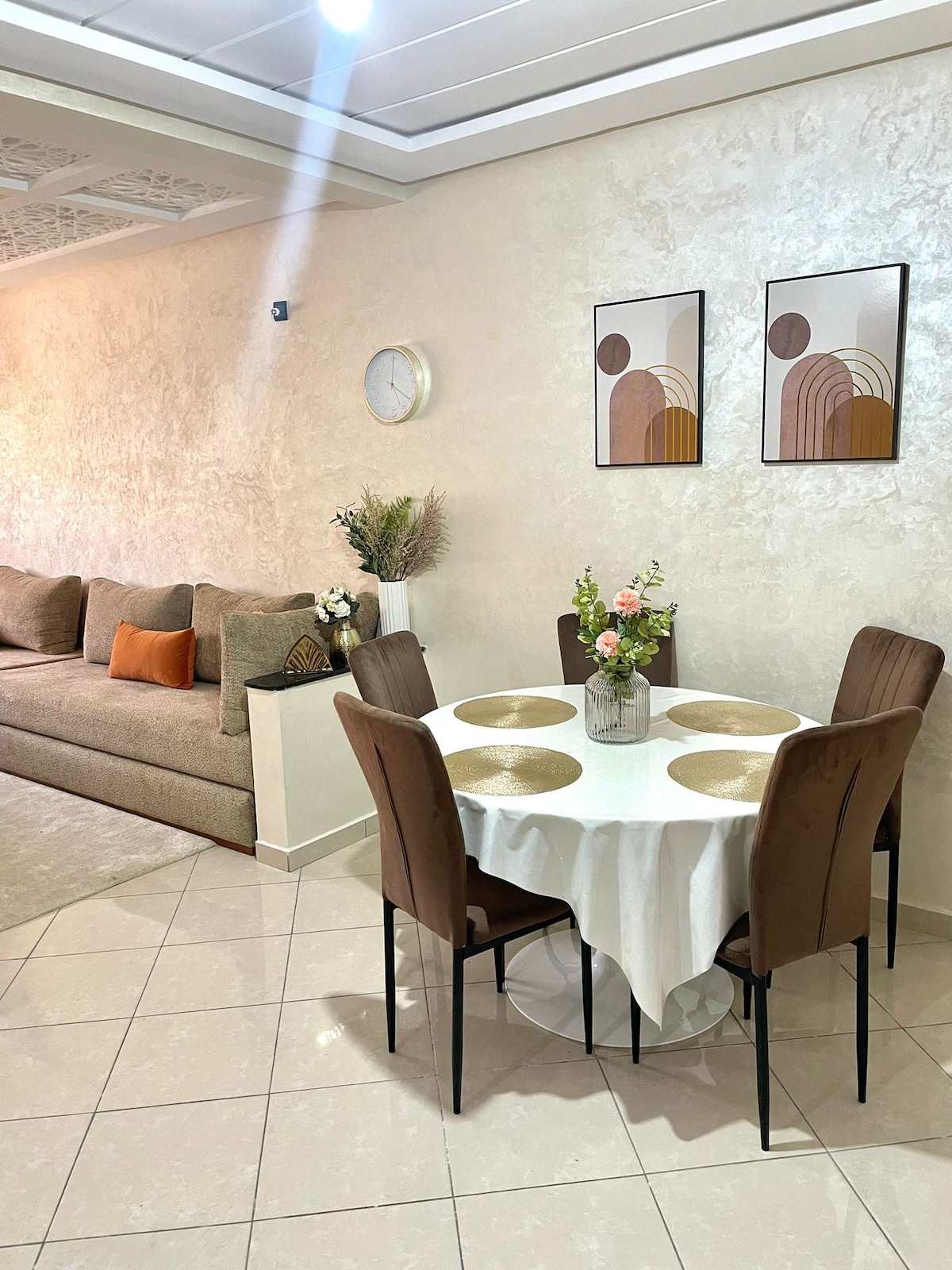 Willkommen in unserer Villa in Béni Mellal, die Modernität und marokkanische Tradition verbindet. Zeitgenössische und marokkanische Wohnzimmer, vier elegante Schlafzimmer mit Queen- und Kingsize-Betten, Klimaanlage und Balkon. Genießen Sie ein Gemeinschaftsbad, ein zusätzliches Schlafzimmer mit Bad und Hammam. Die Einbauküche öffnet sich zu einem Ess- und Wohnbereich. Geräumige Terrasse mit herrlicher Aussicht, gepflegter Garten und privater Parkplatz. Buchen Sie jetzt für ein einzigartiges marokkanisches Erlebnis