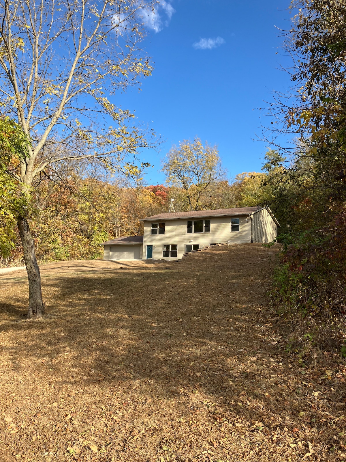 Meine Unterkunft ist gut für Paare, Solo-Abenteurer, Familien bis zu 5 Personen. Ich halte es klein, weil ich keine großen verrückten Partys will. Es ist 36 Meilen vom Kinnick-Stadion und 19 Meilen von der Innenstadt von Cedar Rapids entfernt. Auch 2 Golfplätze, jeweils 25 Minuten entfernt. Ich bin direkt an der asphaltierten Straße. Meine Unterkunft ist auch tierfreundlich mit einem großen Außenzwinger und einem kleineren im Inneren. Es hat auch eine Waschmaschine, einen Räucherofen, einen Grill, einen Holzofen für Pizza und eine flache Grillplatte, wenn du gerne Frühstück kochen möchtest. Es ist perfekt.