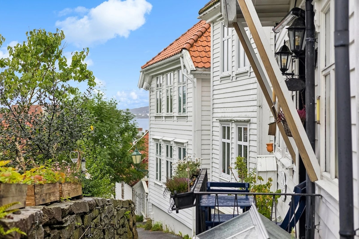 Mach einen Schritt nach vorne und sei präsent ♥︎ Charmante ursprüngliche Wohnung aus den 1800er-Jahren, nur 2 Minuten von Bryggen und allem anderen entfernt. Die Standseilbahn Mount Fløyen ist noch näher. Starkes WLAN, einfacher Check-in mit Codeschloss und nur 15 m zum nächsten Café, aber wir bieten auch lokalen Kaffee an. Eine schmale lokale Straße im Herzen des Geschehens, mit einem komfortablen Wohnraum und einer voll ausgestatteten Küche für längere Aufenthalte. Toller Blick auf die Stadt vom Balkon. Flitterwochen? Willkommens-Cider und lokale Snacks? Alles klar! Babybett auf Anfrage Du hast deine Unterkunft gefunden, vertrau Julie