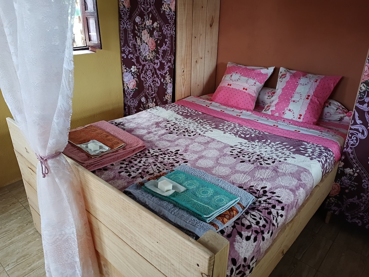 Venez découvrir la vraie vie malgache de l'intérieur ! Cette maisonnette indépendante faite pour 2 à 3 personnes se trouve dans une ferme authentique malgache. La famille d'accueil pratique l'agriculture depuis des générations et pourra vous faire visiter ses terres. Vous disposerez sur place d'une gamme de services à des prix attractifs: repas d'hôtes faits par la famille d'accueil, lessive, visites guidées dans les environs, ateliers de cuisine malgache et d'artisanat.