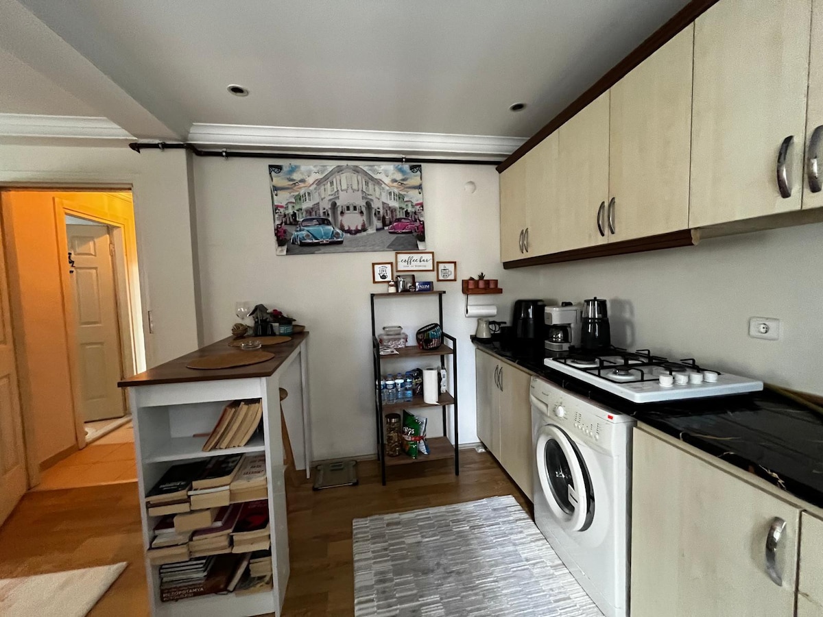 Unsere Wohnung mit Garten, die sich durch ihr modernes Design und ihren komfortablen Wohnraum auszeichnet, ist eine ideale Wahl sowohl für Geschäftsreisen als auch für Städtereisen. Es ist ein 4-5-minütiger Spaziergang zur Güzelyurt Metrobus-Haltestelle und nur 4 Haltestellen zum TUYAP Fair Center. Es ist nur ein paar Schritte vom Basar, dem Markt und den täglichen Bedürfnissen entfernt und liegt zentral und sicher. Sie bietet einen komfortablen Aufenthalt mit einem Queensize-Bett, Klimaanlage und einer voll ausgestatteten Küche. Ein kontaktloser Check-in ist verfügbar. IDENTIFIKATION ist obligatorisch.