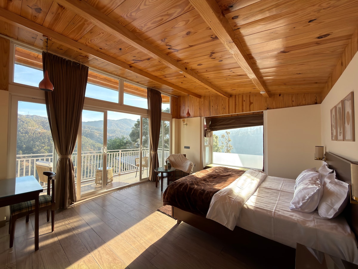 Walnut is 1 of 4 private suites at Northdeck Padampuri, a family-run boutique resort in Sarna Village. If you are looking to slow down, this is your sanctuary. Perfect for couples, remote workers, or anyone needing to escape city life, this suite offers a rare blend of modern comfort and mountain stillness. 1,850m above city chaos, wake to unhurried mornings as the sun greets you on your bed, birds sing, and the sound of the breeze through pine trees nudges you to be truly present.