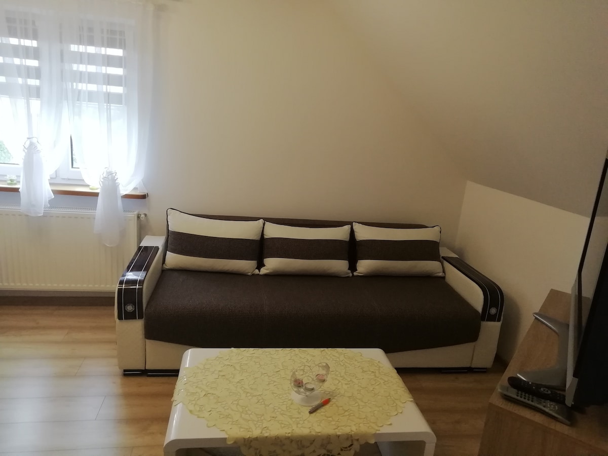 Apartment zur Tagesmiete Schwarze Katze, 2 Zimmer, 50m2, sonnig, komfortable Aufteilung, tolle Lage an der E30 (Krajowa 2), kostenlose Parkplätze und WLAN, Balkon. Die Wohnung befindet sich im 3. (obersten) Stock eines 2011 erbauten Blocks. Es gibt keinen Zugang zum Aufzug. Wir akzeptieren jedoch Haustiere, für die wir spezielle Sicherheitsvorkehrungen getroffen haben - einen mit einem Gitter versehenen Balkon und eine Klappe in der Balkontür. Wir bieten komfortable Unterkünfte für 1-4 Personen mit allen Annehmlichkeiten, damit Ihr Aufenthalt bei uns erfolgreich ist.