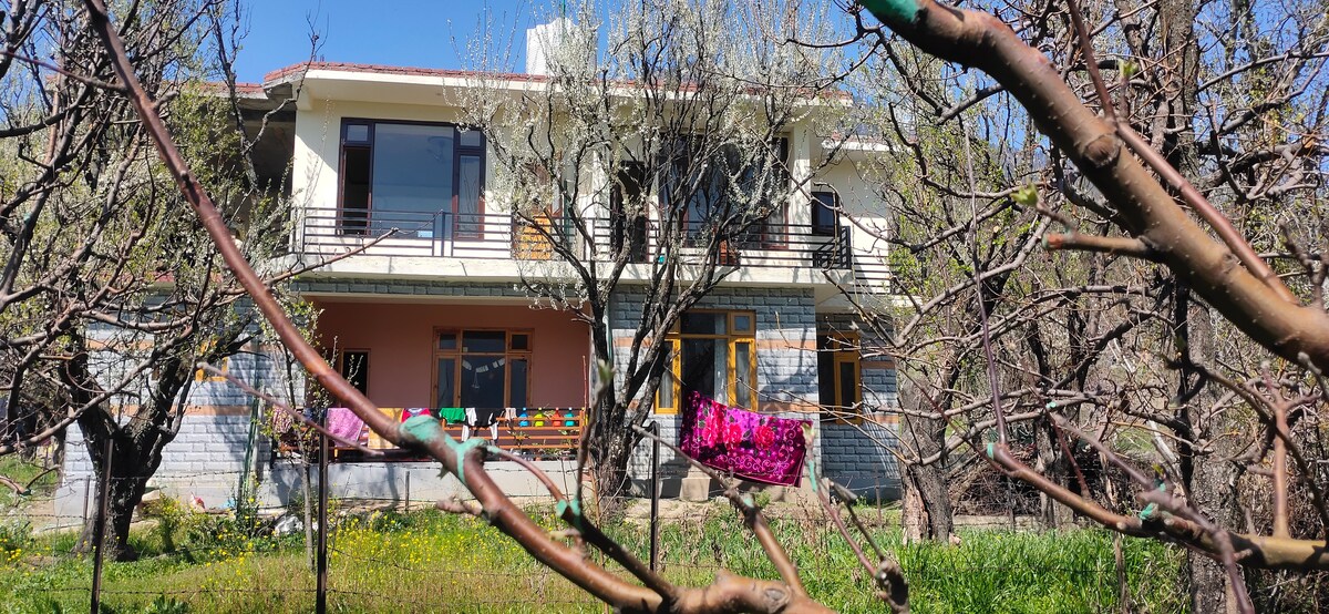 Ein Haus im Herzen des Himalaya, abseits des Trubels der Stadt. Genieße einen ruhigen Blick auf das Tal, umgeben von Pflaumen-, Apfel-, Persimonen- und anderen Bäumen. Eine ruhige Lage, die perfekt für einen erholsamen Urlaub oder einen Arbeitsurlaub ist. Wache mit einem atemberaubenden Blick auf die Berge auf, genieße einen entspannten Tag mit einem Buch auf dem Balkon oder erkunde die vielen nahe gelegenen Sehenswürdigkeiten und Abenteueraktivitäten. Dieser Ort bietet für jeden etwas.