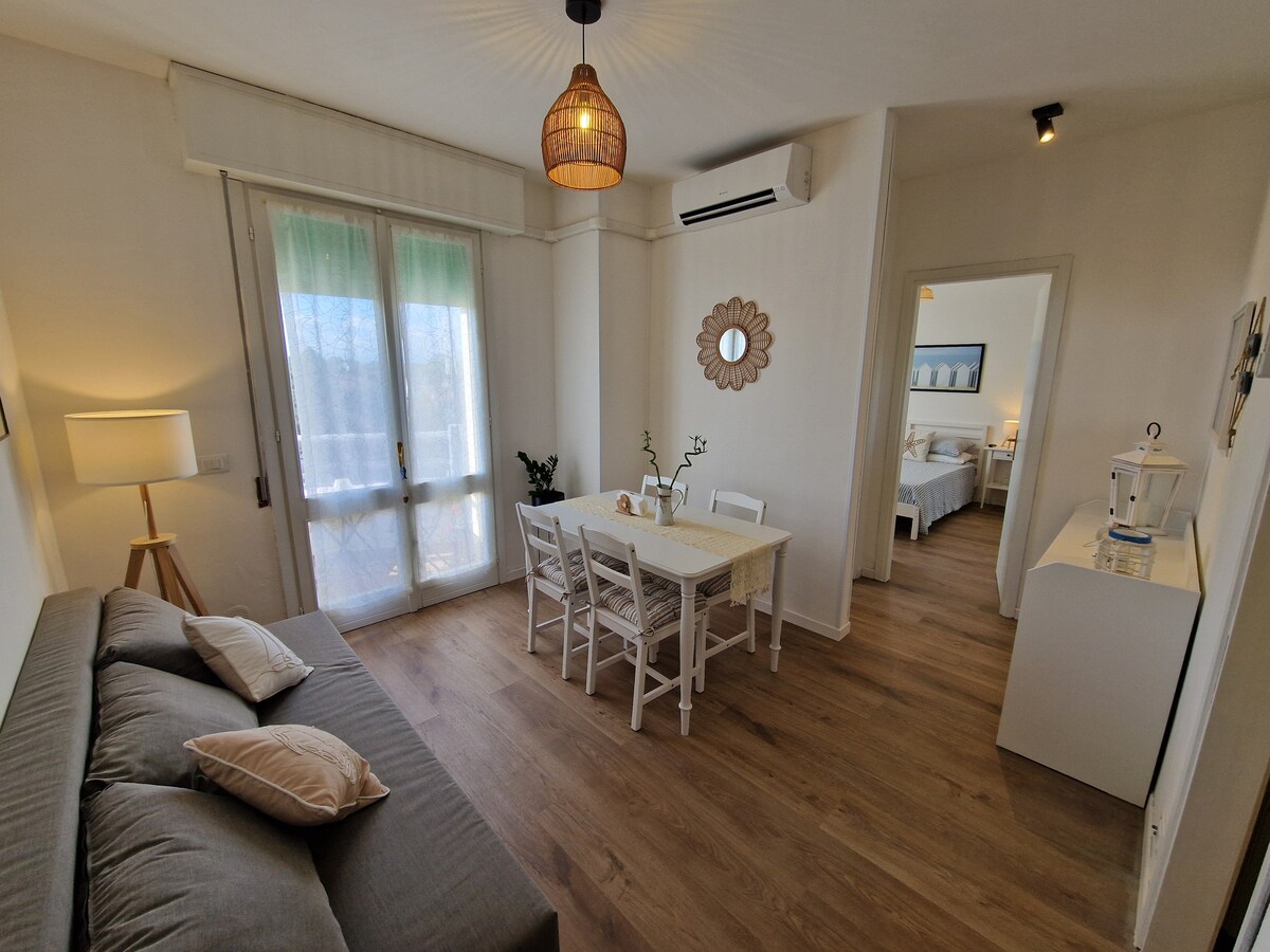 Geräumige, kürzlich renovierte Dreizimmerwohnung in der Hauptstraße von Lignano Sabbiadoro, 200 Meter vom Strand entfernt. Die Wohnung mit Blick auf einen Innenhof, der Ruhe und Frieden garantiert, besteht aus einem Wohnzimmer, einer separaten Küche, einem Badezimmer und zwei großen Schlafzimmern (ein Doppelzimmer und ein Doppelzimmer mit drei Einzelbetten). Dazu gehören ein nicht überdachter Parkplatz im Innenhof, WLAN, Waschmaschine und Klimaanlage.