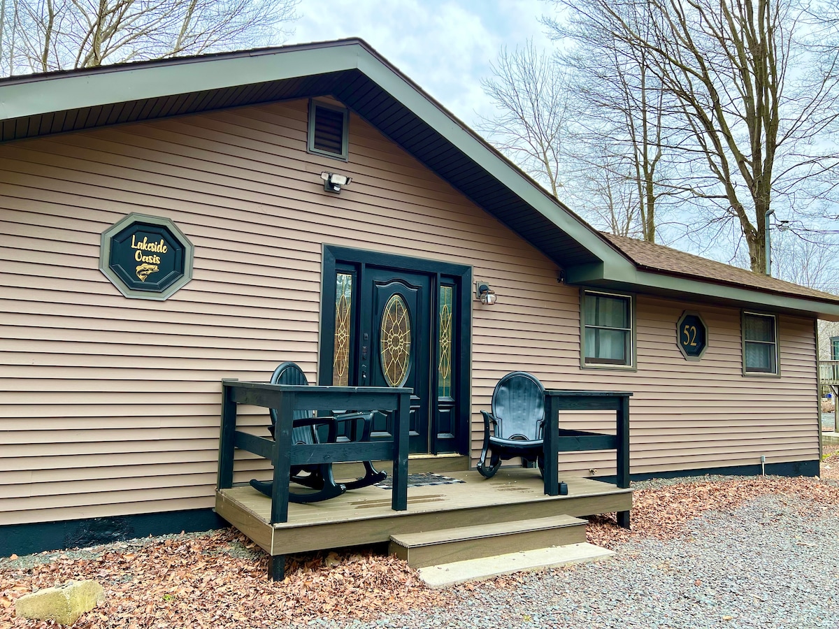 Lass den See für die Unterhaltung sorgen. Perfekt geplantes Haus am Big Bass Lake. Wir haben 3 Kingsize-Betten, die auf dich warten, nachdem du dich in einer 5-Sterne-Community entspannt und ausgetobt hast. Unsere Unterkunft verfügt über einen eigenen Privatstrand mit Kanus, Kajak, Dock und einem Bereich zum Schwimmen. Unsere große Terrasse bietet einen Panoramablick auf den Big Bass Lake. Im Inneren haben wir zwei 85-Zoll-Fernseher, um die ganze Gruppe zu unterhalten. Wir sind in der Nähe aller Pocono-Attraktionen.