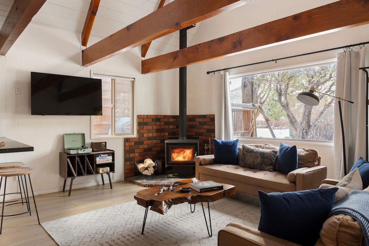 🛁 Privater Whirlpool 🔥 Feuerstelle im Freien + Kamin Filmleinwand im🎬 Freien 🐾 Eingezäunter Hof (Haustier 👍🏽) 📚 Loft-Balkonecke 🛏️ 2 Schlafzimmer + Loft, Platz für 6 Personen: Queensize-Bett, Etagenbetten und Luftmatratze 🏔️ THE MOUNTAIN MURDOCK ist ein renoviertes Refugium, 11 Minuten von den Pisten entfernt und in der Nähe des Big Bear Lake, von Wanderwegen und dem Dorf. 🍽️ Offene Küche, Plattenspieler und Sichtbalken – ideal für Paare, Familien und Haustiere ⭐️ Gäste lieben Abende an der Feuerstelle, Entspannung im Whirlpool, Filmabende unter dem Sternenhimmel, Kaffee im Loft und die entspannte Bergatmosphäre.