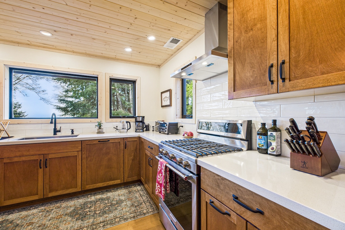 Willkommen im The Wind and Tide, wo Wald auf Meer trifft. Unser neu renoviertes Haus liegt auf drei Hektar bewaldeter Klippen mit Blick auf den Pazifik, nördlich des Küstendorfes Trinidad. Ruhe erwartet dich, wenn du ein Bad im Whirlpool nimmst und dich an der Feuerstelle entspannst, die Geräusche von Seelöwen, die Aussicht auf wandernde Wale und Sonnenuntergänge und Sternenbeobachtungen in Hülle und Fülle aufnimmst. Gezeitenpools, Achatjagd und die Erkundung des Sue-Meg State Parks sind nur eine kurze Fahrt entfernt.