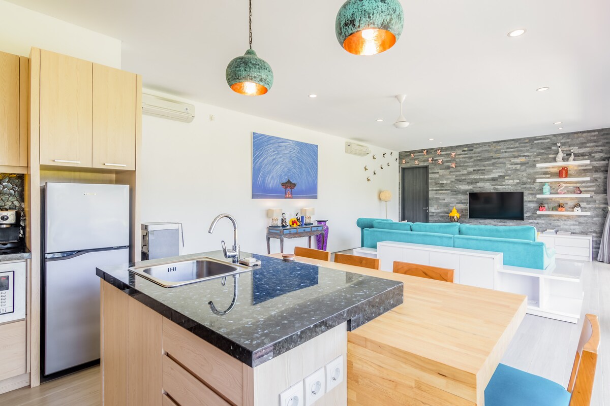 Wir erweitern Le Bamboo derzeit um 9 neue Bungalows. Da wir gerade die ersten Wohneinheiten eröffnen, sind in der Gegend noch einige kleinere Fertigstellungsarbeiten im Gange. Der größte Teil der Bauarbeiten ist bereits abgeschlossen, sodass die Beeinträchtigung minimal ist. Um unsere ersten Gäste willkommen zu heißen, bieten wir für diese neuen Bungalows spezielle Eröffnungspreise an. Bambus-Bungalow mit einem Schlafzimmer, einem Zwischengeschoss und einem privaten Tauchbecken. Ein einzigartiger Aufenthalt für Familien mit Kindern.