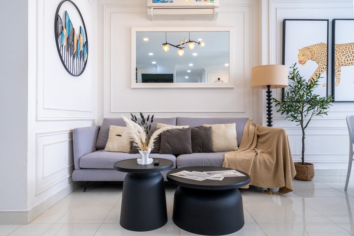 Die Wohnung ist wunderschön im Wabi-Sabi-Stil gestaltet und befindet sich im Obergeschoss des ZENITY CAPITALAND-Gebäudes im Herzen des Distrikts 1. Mit einem einzigartigen künstlerischen Stil bietet die Wohnung hochwertige Resort-Einrichtungen wie einen Swimmingpool, einen Whirlpool, einen Fitnessraum, einen Besprechungsraum, einen privaten Arbeitsraum, einen Gartengrillplatz, einen Kinderspielplatz, eine geräumige Lounge mit Klimaanlage und WLAN in der Lobby. Alle Schlafzimmerfenster und der Balkon haben einen Panoramablick auf die ganze Stadt. Es ist eine einzigartige, luxuriöse und stilvolle Wohnung