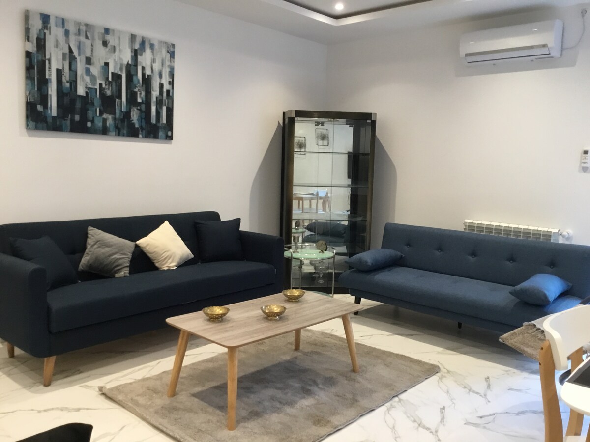 Eine modern eingerichtete Wohnung; in einer ruhigen Gegend, aber ganz in der Nähe der belebten Straße von Sidi Yahia. - Parkettboden/Zentralheizung/Smart-TV/Klimaanlage/ kostenloses WLAN/Dressing/Balkon zum Trocknen von Kleidung und Waschmaschine/Bügeleisen/Mikrowelle/Wasserkocher/Küchenutensilien/Handtücher/Reinigungsprodukte - Mitarbeiter rund um die Uhr für Ihre Hilfe während Ihres Aufenthalts in Algerien zur Verfügung