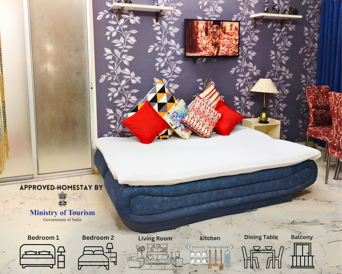 Relax with the whole family or your gang of friends at this peaceful, thoughtfully curated hive, away from the noise, yet not deprived of lively energy of the neighbourhood. A spacious furnished apartment for you to organise as per your individual preference/ convenience, like a blank canvas. This property is a part of a beautifully planned contemporary society that nurtures the freshness of green nature, amicable interactions & personal space. Book an Uber/ Ola or take the bus.