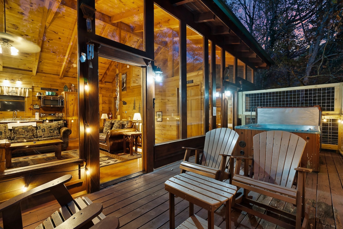 COZY CABIN! 65"tv Hot-tub, Jacuzzi, Fireplace!