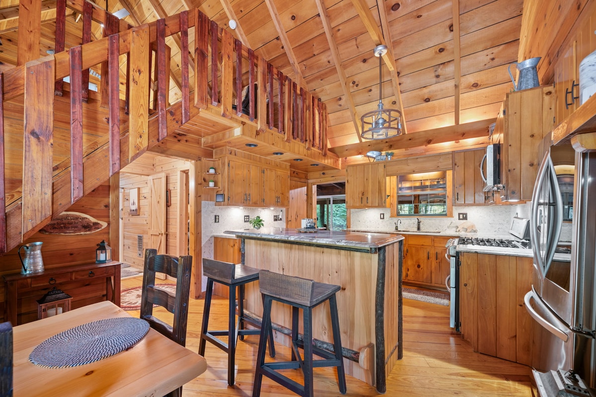 Du verdienst einen Ausflug in einen erstklassigen Rückzugsort! Killer View Cabin mit EV-Ladegerät bietet das ganze Jahr über einen atemberaubenden Blick; liegt in der Nähe der Stadt, der Seen und Sehenswürdigkeiten! Entspanne dich im Whirlpool, versammle dich an der Feuerstelle im Freien oder spiele die vielen angebotenen High- und Low-Tech-Spiele. Bleib mit Highspeed-Internet und einem speziellen Arbeitsbereich in Verbindung. Magst du Sport? Es gibt Kabelfernsehen! Anreise - die fast vollständig asphaltierte Straße, die zum flachen Parkplatz führt, sorgt für eine stressfreie Ankunft in unserer charmanten Hütte.