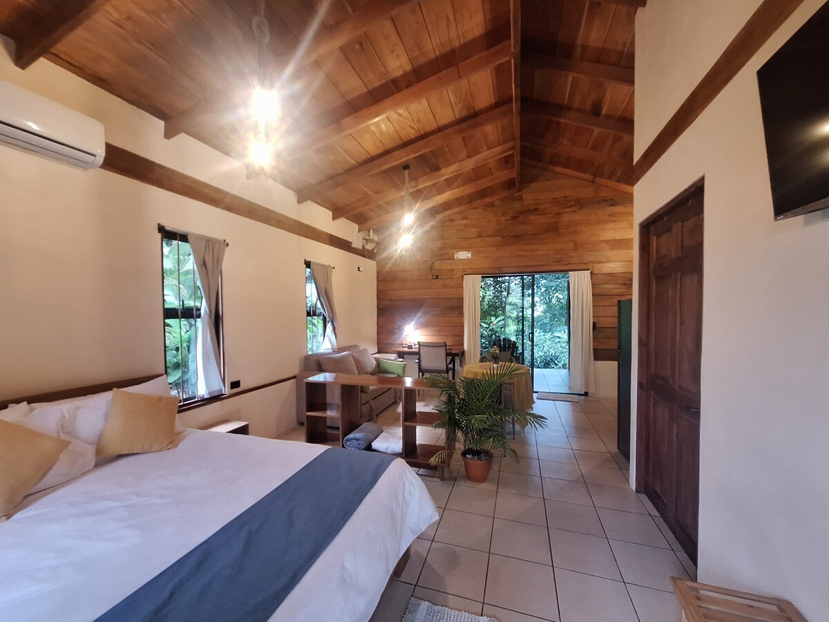 Eine Unterkunft, um der Routine zu entfliehen und sich mit der Natur zu verbinden. Sie hat ein modernes Design mit einer warmen Dekoration, umgeben von Natur, wo du viele Vögel beobachten kannst, einen schönen Blick auf den Vulkan, einen Balkon, eine Terrasse, einen erfrischenden Pool und einen privaten Whirlpool. Ein idealer Ort für Paare, Freunde oder um in Ruhe zu Hause zu arbeiten. Strategisch günstig in der Nähe aller Hauptaktivitäten gelegen und nur 2,5 km vom Zentrum von La Fortuna und 1 km vom La Fortuna Wasserfall entfernt.