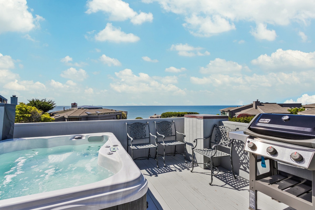 Dieses atemberaubende Haus liegt auf einer Klippe direkt über dem Meer. Setze dich ins Wohnzimmer mit einem 180-Grad-Blick auf den Ozean, höre die Wellen, wenn sie hereinrollen, beobachte Greifvögel, die auf einem Zypressenbaum landen, und Rehe, Füchse und andere Wildtiere, die auf dem Hügel grasen. Gelegentlich kannst ein Wal oder einen Delfin vor der Küste schwimmen sehen. Beobachte in der Abenddämmerung den Sonnenuntergang, während du in der voll ausgestatteten Küche mit allen neuen Geräten das Abendessen zubereitest. Später kannst du beobachten, wie der Mond und die Sterne herauskommen, während du dich zum Rauschen der Wellen entspannst.