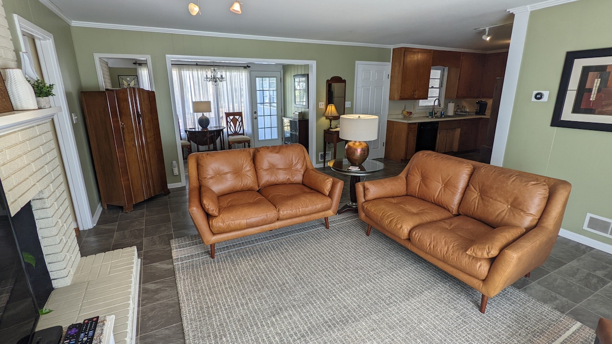 Clean, spacious midcentury home in quiet neighborhood provides a great place to unwind with nearby pond and wildlife. Lots of room to spread out and relax or prep for an event. A quick 13 min to campus/downtown or nearby restaurants. Internet,Netflix, pool table, coffee, tea, filtered water and snacks. Patio has chairs, umbrella, grill and lights. 3 spacious bedrooms, 2 fully appointed baths. Driveway parking. 2 week+ stays welcome. Contact us about shorter term availability.