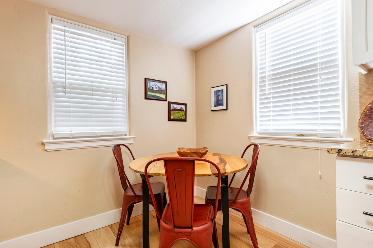 Verwöhne dich in einem luxuriösen 65 Quadratmeter großen Einfamilienhaus im Herzen des North End. Kreative Akzente begrüßen dich in diesem zweiten Zuhause, wie z. B. Viking-Geräte, Arbeitsplatten aus Holz von einer Bowlingbahn und Scheunentüren, um die Räume zu trennen. Gehe auf einen Spaziergang von zwei Blocks zum 13th St Pub und Hyde Park, die nur ein paar Blocks entfernt liegen. Oder schotte dich mit einem romantischen Gaskamin, 800 Mbit/s Internet und High-Tech-Akzenten wie Alexa Show von der Welt ab. Fahre mit einem verfügbaren Cruiser-Bike!