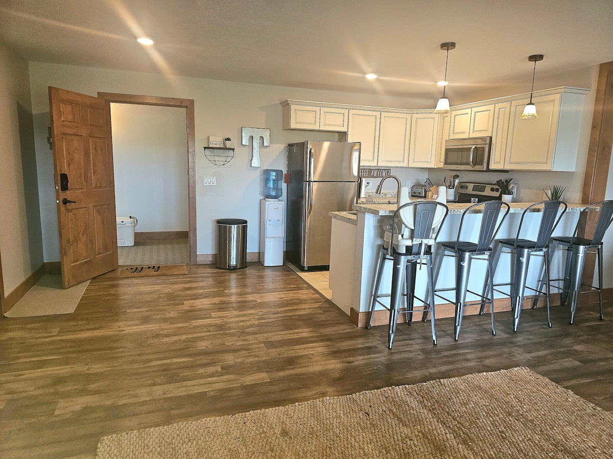 Willkommen in deinem perfekten Kurzurlaub am See! Dein geräumiges 2000 sq ft Blockhaus in der unteren Etage mit allem Komfort, den du für Familien und größere Gruppen brauchst. Mit 10 Betten gibt es viel Platz für alle – egal, ob du ein Familientreffen, eine Hochzeit, einen Angelausflug, einen Golfausflug oder einfach nur einen ruhigen Urlaub planst. Unglaubliche Sonnenuntergänge, Feuerstelle. Premium-Golf-Simulator an der Unterkunft angebracht Neues Wellnesscenter kommt Ende 2026 Professioneller Golfplatz!