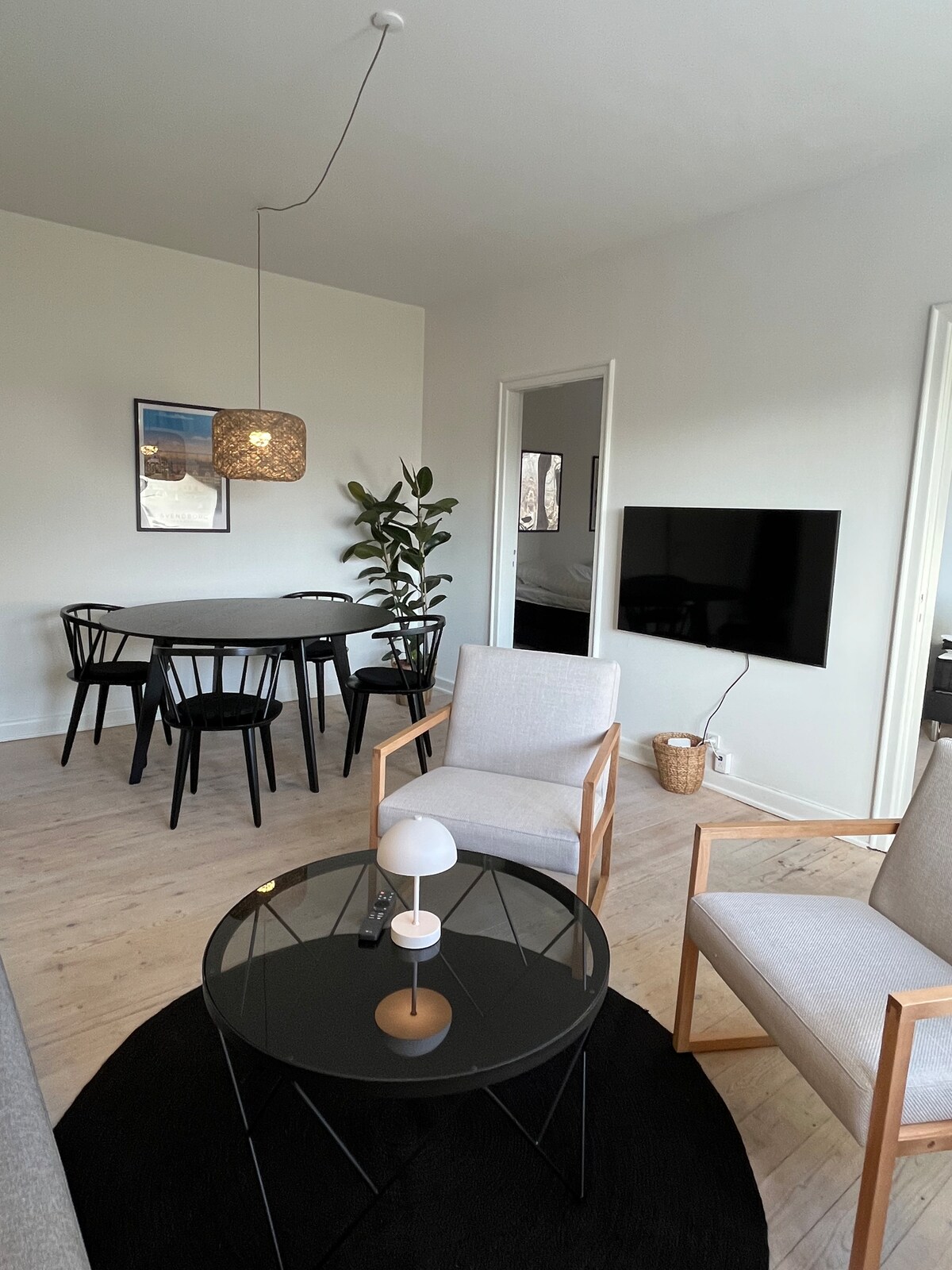 WOHNUNG AM WASSER, SCHÖN GELEGEN – NAHE DEM ZENTRUM VON ODENSE - Kostenlose Parkplätze und Fahrräder stehen zur Verfügung. Die Unterkunft befindet sich über dem Erdgeschoss und ist in einem personalisierten skandinavischen Stil mit ruhigen Farben und viel Licht gestaltet. Privater Eingang von einer Treppe/einem Balkon, Blick auf Wald und Wasser. Die Wohnung ist voll möbliert. Zwei Schlafzimmer, ein geräumiges Badezimmer und eine integrierte Küche/Wohnzimmer. Wir wohnen im Erdgeschoss und sind jederzeit erreichbar. Das Stadtzentrum ist mit dem Fahrrad in zehn Minuten erreichbar.