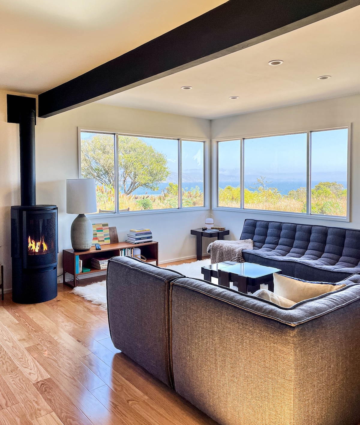 Das Ocean Parkway House ist ein herrlicher Rückzugsort an der Küste mit unvergleichlichem Meerblick und liegt an einem abgelegenen Fleckchen mit Blick auf den Pazifik. Dieses einzigartige Bolinas-Strandhaus aus den 1960er Jahren ist ein Ort zum wirklichen Entspannen und Erholen. Vollständig renoviert mit einer kuratierten Mischung aus Vintage- und modernen Möbeln – unser Ferienhaus hat ein Design aus der Mitte des Jahrhunderts mit Luxus wie Coyuchi-Handtüchern, einer Küche für einen Koch, einem skandinavischen Kamin, einer Regendusche im Freien, einem Whirlpool aus Zedernholz und einem neuen beheizten Stein-Loveseat auf der oberen Terrasse.