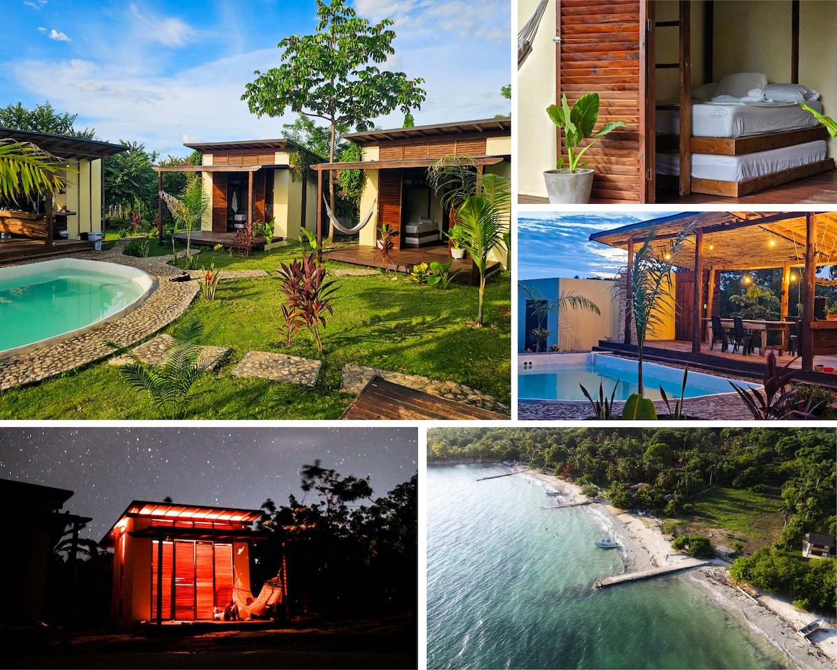 Tiny Village Cartagena ist ein Boutique-Tiny House-Resort auf der Insel Tierra Bomba — weniger als eine 15-minütige Bootsfahrt vom Stadtzentrum von Cartagena entfernt. Unsere Villa mit Gartenblick ist eine unserer Lieblings- „Tiny Villas“ für die ganze Aussicht! Diese zweistöckige 26 m ² große Villa bietet eine private Dusche und ein WC, zwei Doppelbetten und eine schöne private hintere Terrasse mit Blick auf das Gewässer rund um das Anwesen.