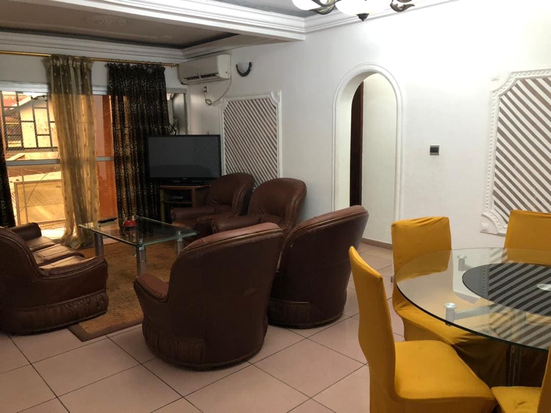Erleben Sie den modernen Charme dieses neuen, voll möblierten Duplex. Ihre Residenz profitiert von einer privilegierten sozioökonomischen Umgebung mit Märkten, Banken, Bäckerei 10 Minuten entfernt. Die Unterkunft ist sicher und 15 Minuten vom Stadtzentrum entfernt. Die Maisonette-Wohnung besteht aus 2 Schlafzimmern, 2 Bädern, 1 Wohnzimmer und 1 Küche. Klimatisierte Wohnung mit W-LAN. Bohrung und Stromaggregat bei Stromausfall inklusive