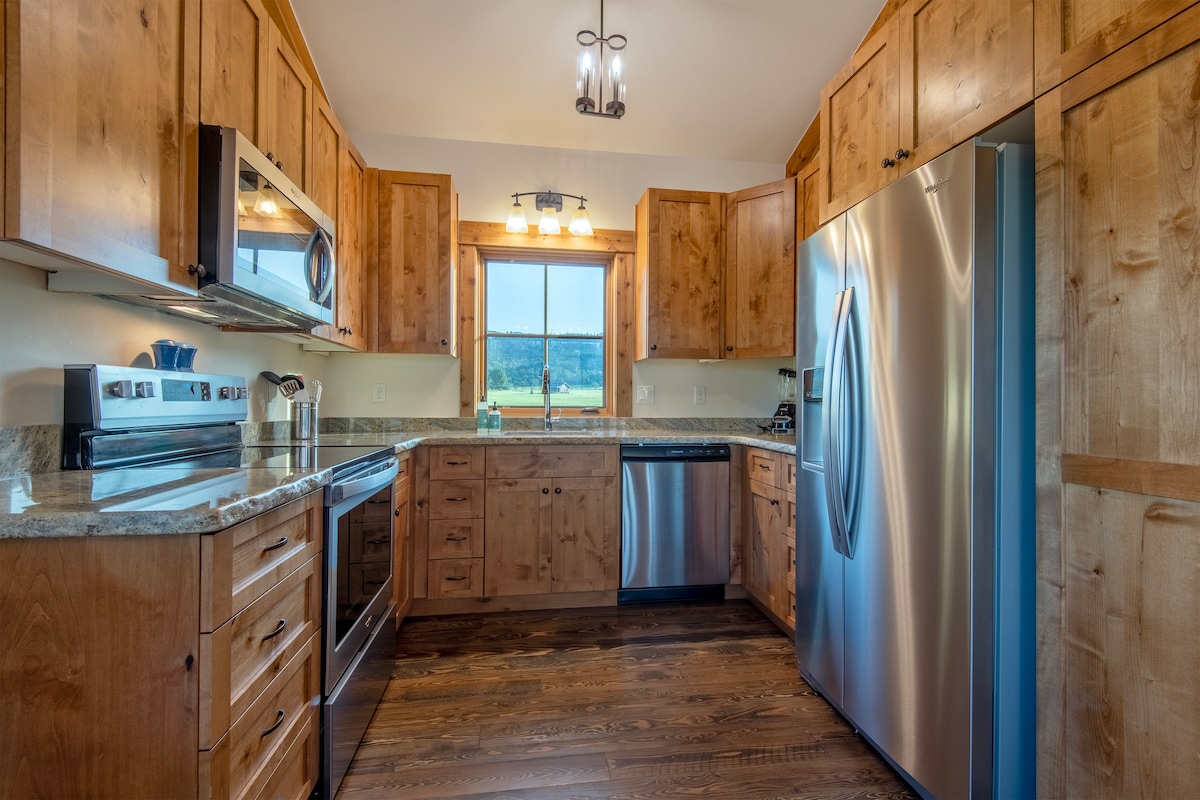 Dieses neu gebaute, energieeffiziente, individuell gestaltete Haus liegt ideal an einem grünen Hang mit weitem Blick über das südliche Teton Valley und die umliegenden Berge. Nur zwei Meilen vom unkonventionellen Weiler Victor ID entfernt, gibt es zahlreiche Möglichkeiten zum Skifahren, Mountainbiken, Angeln, Wandern und zur Wildtierbeobachtung von Weltklasse. Jackson Hole, Grand Targhee, der Grand-Teton-Nationalpark und Yellowstone sind alle leicht mit dem Auto erreichbar. Wir freuen uns sehr, unser kleines Bergparadies mit dir zu teilen!