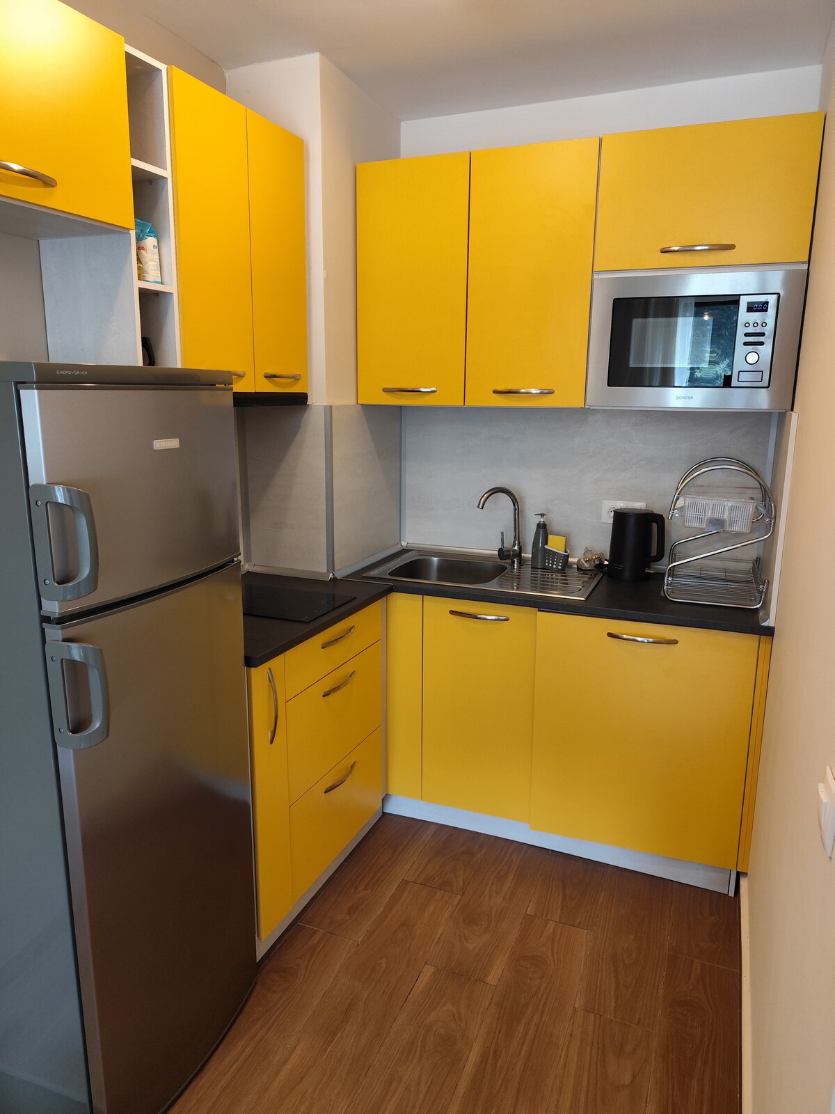 Willkommen in unserem Studio im Borovets Gardens Aparthotel, das sich neben einem kleinen Fluss befindet und nur 10 Gehminuten von allen Skipisten, Liften und Restaurants entfernt ist. Bettwäsche und Handtücher werden bereitgestellt. Das Studio befindet sich im zweiten Stock mit Balkon und Blick auf den Kiefernwald. Es verfügt über ein Doppelbett 160/200 cm und ein Schlafsofa, das zu einem Bett 140/200 cm wird. Die Küche ist modern eingerichtet und komplett zum Kochen ausgestattet. Es gibt kostenlose Parkplätze und sicheres und stabiles Internet und TV.