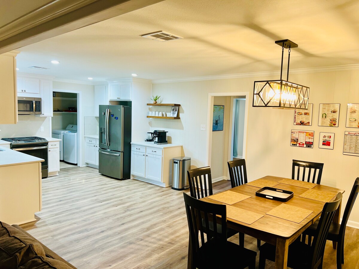 Schönes und charmantes Haus mit 4 Schlafzimmern und 3 Bädern in einer ruhigen Gegend. Dieses Haus bietet Platz für eine große Gruppe oder Familie. 2 der 4 Schlafzimmer haben angeschlossene Badezimmer. 4 Schlafzimmer haben Queensize-Betten. Ein großer eingezäunter Hinterhof, ideal zum Haustieren, Grillen und Entspannen. Voll ausgestattete Küche, Bäder, Waschmaschine und ein altmodisches Arcade-Videospiel mit 100 Spielen. Zentral gelegen, sodass du nur wenige Gehminuten von tollen Parks, Einkaufsmöglichkeiten und Restaurants entfernt bist. Komm und entspann dich!!