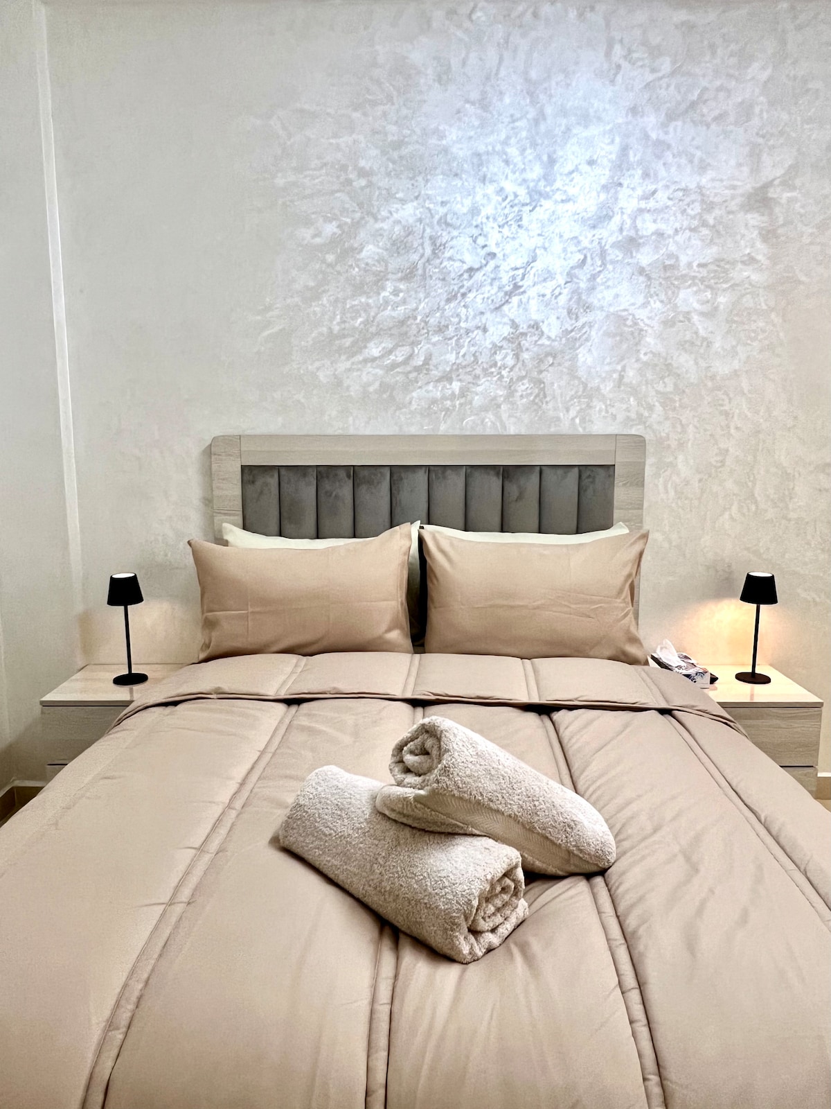 Diese luxuriöse Airbnb-Wohnung bietet zwei klimatisierte Schlafzimmer, eine PlayStation 5, Netflix, luxuriöse Toiletten, eine sehr gut ausgestattete Küche und zwei High-End-Fernseher mit ultraschneller Glasfaserverbindung. Voll klimatisiert, um optimalen Komfort in allen Teilen des Hauses zu gewährleisten. Genießen Sie während Ihres gesamten Aufenthalts eine angenehme Atmosphäre. Zusätzlich zu Ihrem Komfort bietet die Wohnung auch kostenlose Innenparkplätze im Gebäude.