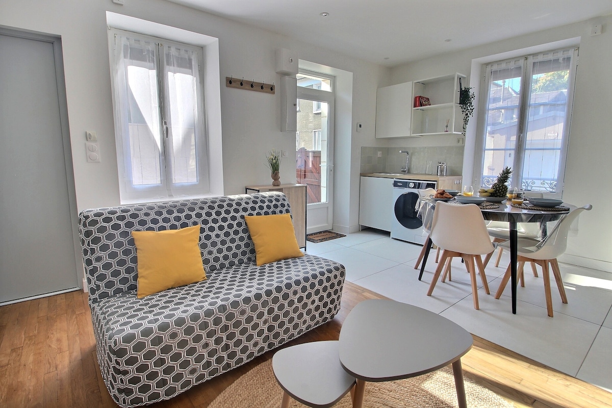 Maisonette 30 m2, komplett ausgestattet, mit eigenem Garten und Zugang zum Pool in der Saison. Sicherer Parkplatz auf Anfrage. 10 Minuten von Bourges mit dem Auto und 5 Minuten zu Fuß: - die Abtei von PLAIMPIED - der grüne Weg, der nach Bourges führt, entlang des Berry-Kanals. Schöner Spaziergang für alle, auch für unsere vierbeinigen Freunde - ein Kinderspielplatz in einem schönen Park - ein Minimarkt, eine Bäckerei, eine Metzgerei und ein nettes Restaurant. Babyausstattung. Arbeitsbereich/WLAN mit hoher Geschwindigkeit.
