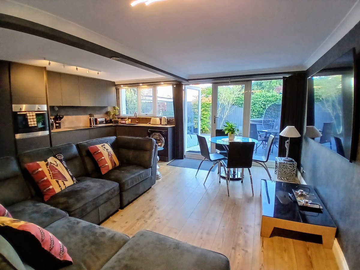 Schönes, modernes Studio-Anbau mit privater Terrasse, ideal gelegen für einen einfachen Zugang zum Flussufer von Tuckton/Christchurch und zu den atemberaubenden Stränden von Southbourne. Diese und viele andere schöne Ziele sind zu Fuß erreichbar, ebenso wie Restaurants, Bars, Cafés und Geschäfte. Dein Studio verfügt über einen Küchenzeilenbereich, der für Frühstücksgrundlagen, heiße/kalte Getränke und leichte Mahlzeiten ausgestattet ist. Es gibt ein Doppelbett und ein luxuriöses Duschbad, alle mit gewölbten Decken, um deine Unterkunft zu vervollständigen.