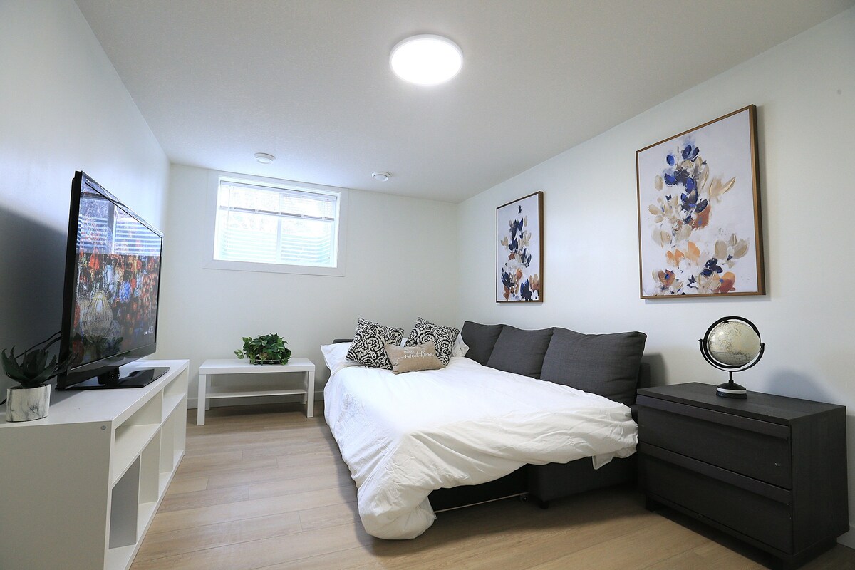 Genieße ein stilvolles und ruhiges Erlebnis in dieser zentral gelegenen Unterkunft. 10 Autominuten von der Innenstadt und 1 Stunde 23 Minuten von Banff entfernt. Moderne Geräte, Designermöbel und eine voll ausgestattete Küche! Streame Filme und Shows über unser High-Speed-WLAN und erlebe unseren exzellenten Gästeservice, der alle deine Bedürfnisse erfüllt. Der schlüssellose Selbst-Check-in über einen per E-Mail versendeten Leitfaden macht den Zugang flexibel und einfach. Das Parken ist kostenlos und immer für dich reserviert. Besucher können kostenlos auf der Straße parken.