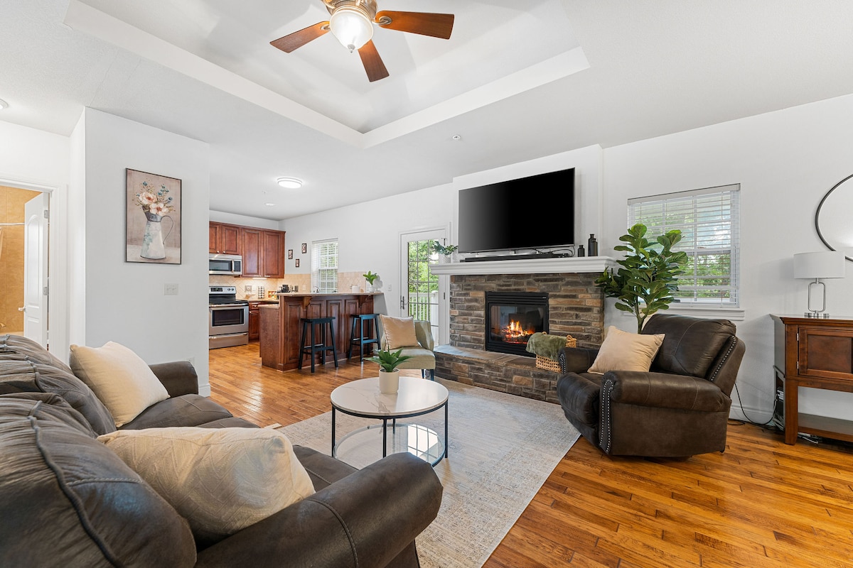 Moderne, neu renovierte Wohnung mit 2 Schlafzimmern/2 Bädern am Roark Creek mit luxuriöser Einrichtung, voll ausgestatteter Küche, Balkonblick, Kingsize-Betten, Schlafsofa und Highspeed-WLAN. Genieße die Annehmlichkeiten des Resorts, darunter Innen-/Außenpools, einen Fitnessraum, eine Sauna, Wanderwege, einen Spielplatz und ein Bootsanleger. Erstklassige Lage in der Nähe von Branson Landing, der Innenstadt, Silver Dollar City und Top-Attraktionen – dein perfekter Kurzurlaub am Creekside.